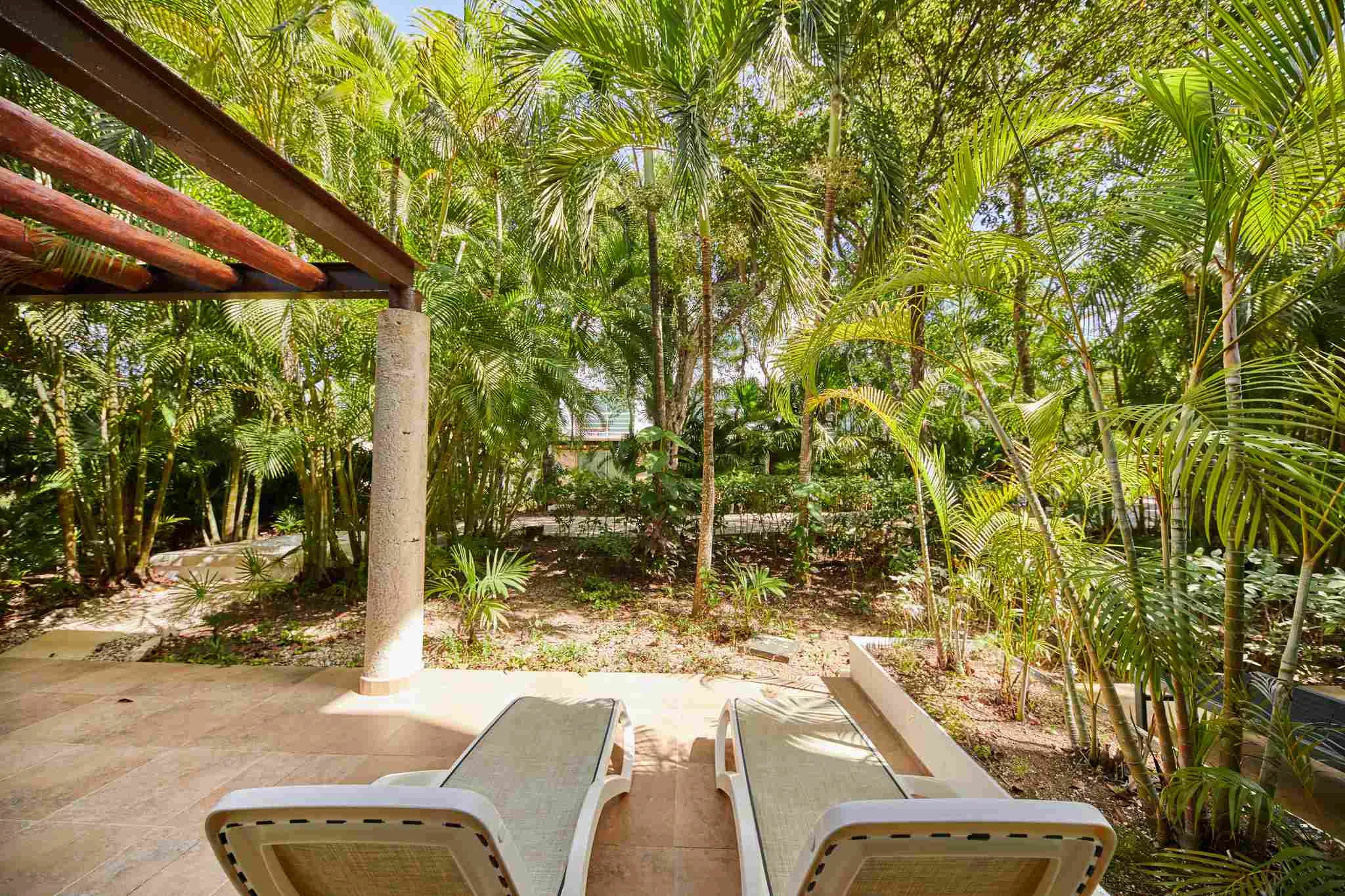 - Terrasse mit Whirlpool-Badewanne und spektakulärem Blick auf den Maya-Dschungel