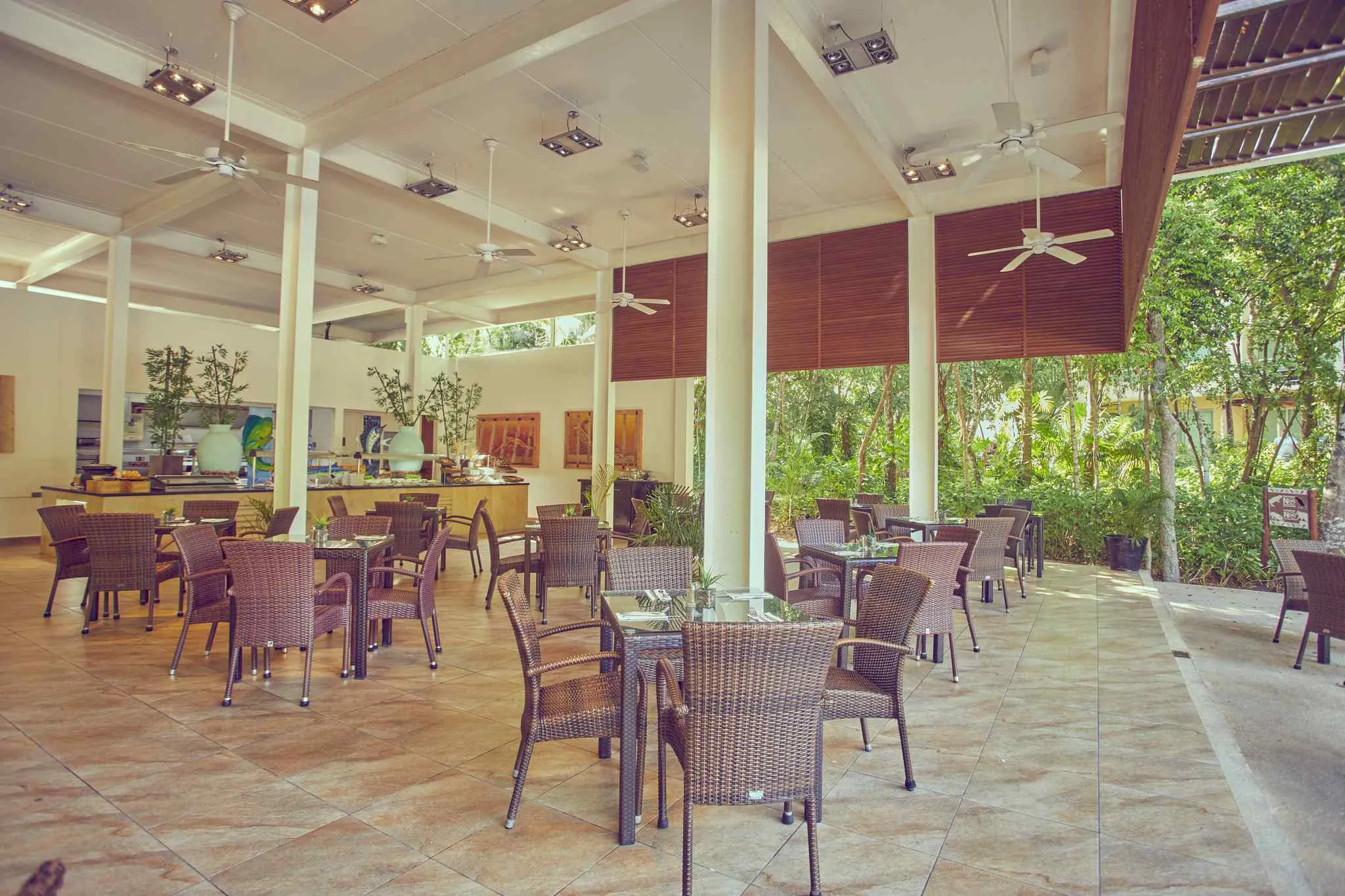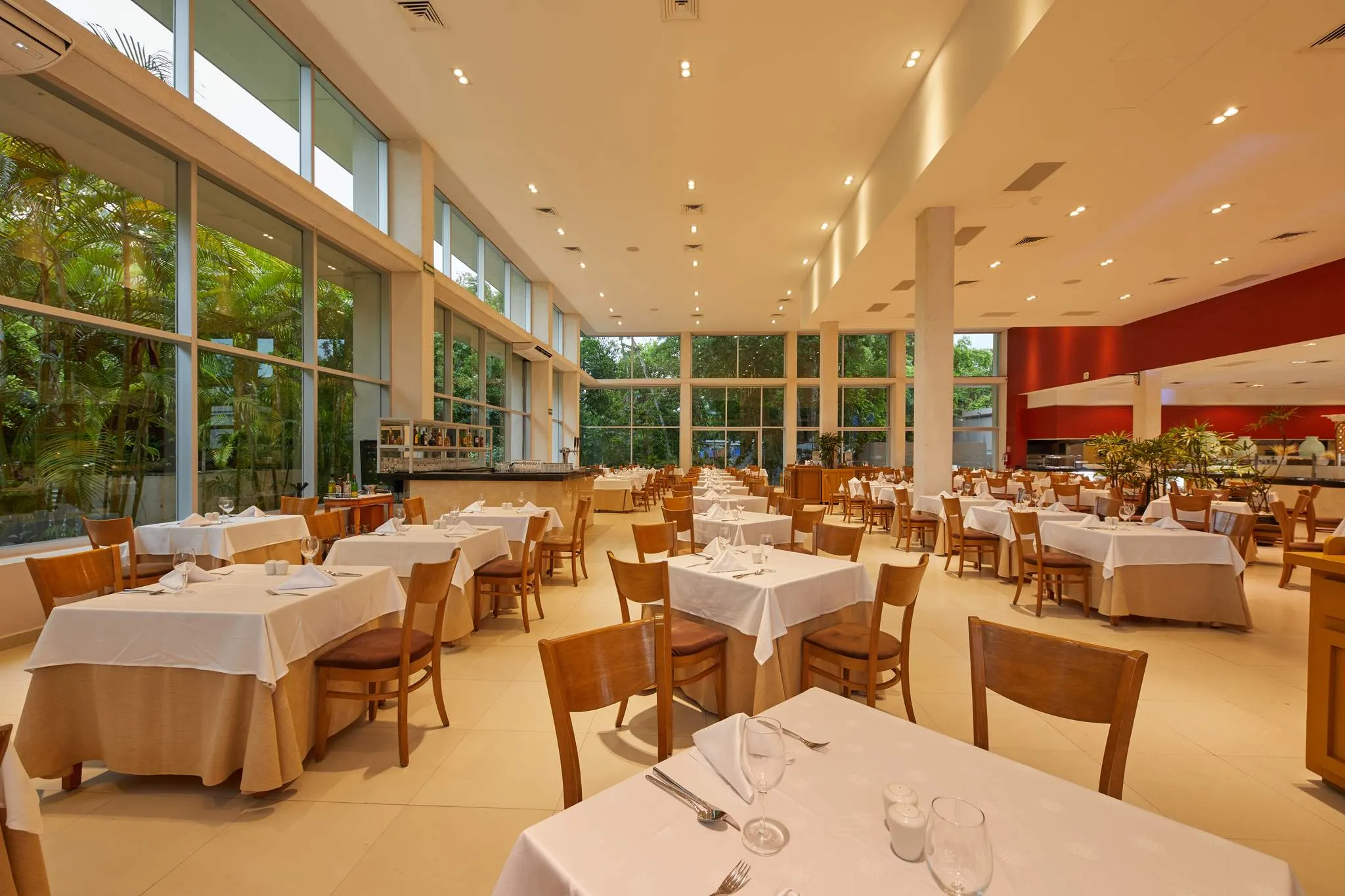 Petits-déjeuners variés pour commencer la journée sans hâte, déjeuners et dîners avec stations de cuisine internationale, propositions fraîches et ambiance détendue invitant à choisir sur le moment ce qui vous fait envie. Un espace polyvalent, parfait pour un repas tranquille ou un dîner informel avant de profiter de la soirée.
