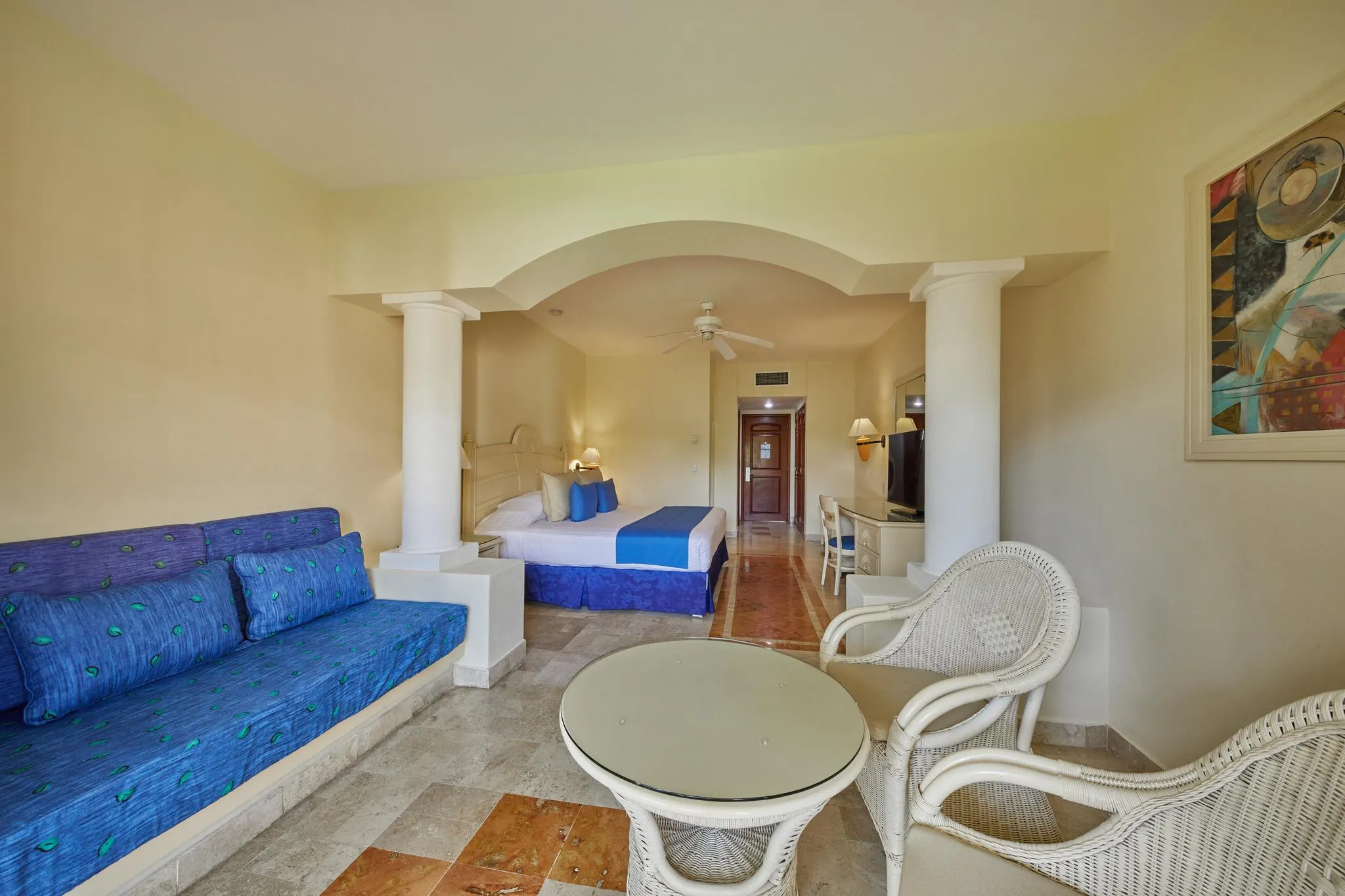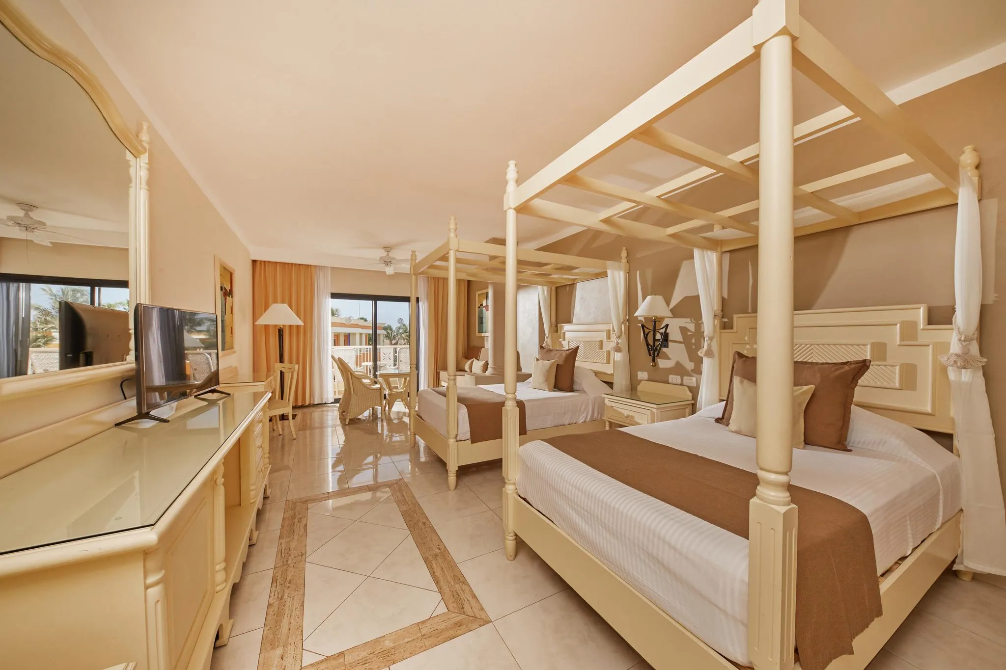 Qui, ogni giorno si trasforma in un'esperienza indimenticabile: gastronomia di alto livello con ristoranti buffet e à la carte illimitati, servizio in camera 24 ore su 24, piscine spettacolari, kids club, parco acquatico per bambini, spettacoli di primo livello e un programma completo di attività per tutte le età. Le sue ampie camere, molte swim up, offrono il massimo comfort, mentre l'accesso a tutto il complesso, al campo da golf PGA, alla spa e alla Hacienda Doña Isabel eleva il soggiorno a un altro livello.